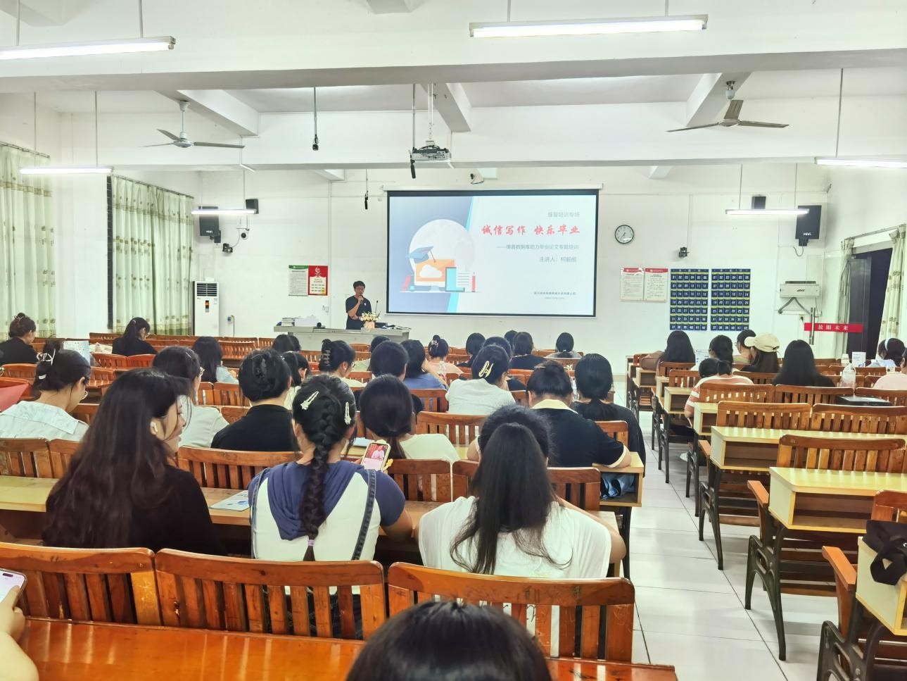 针对学生毕业论文的重要性,讲师在论文内容和写作方法上分别做了讲述,会后针对个别同学的问题,一一解答。通过培训,解决了很多同学书写毕业论文的误区,帮助学生掌握了快速书写毕业论文的方法和技巧。(张新玲摄)