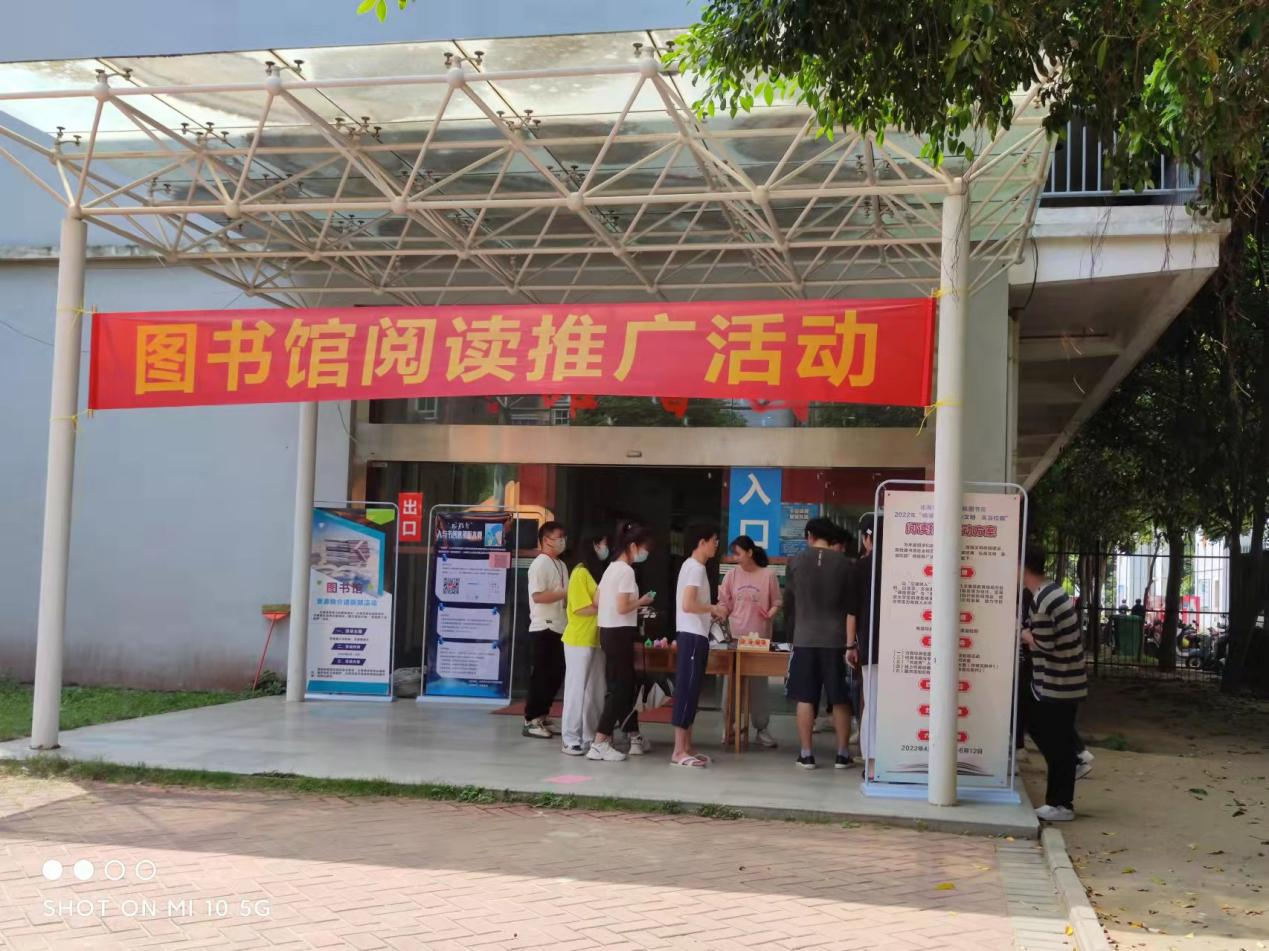 2022年4月12日,我校图书馆举办的“畅读阅读 弘扬文明 美溢校园”系列阅读推广活动开始了,活动在东校区图书馆、西校区图书馆门口同时启动。