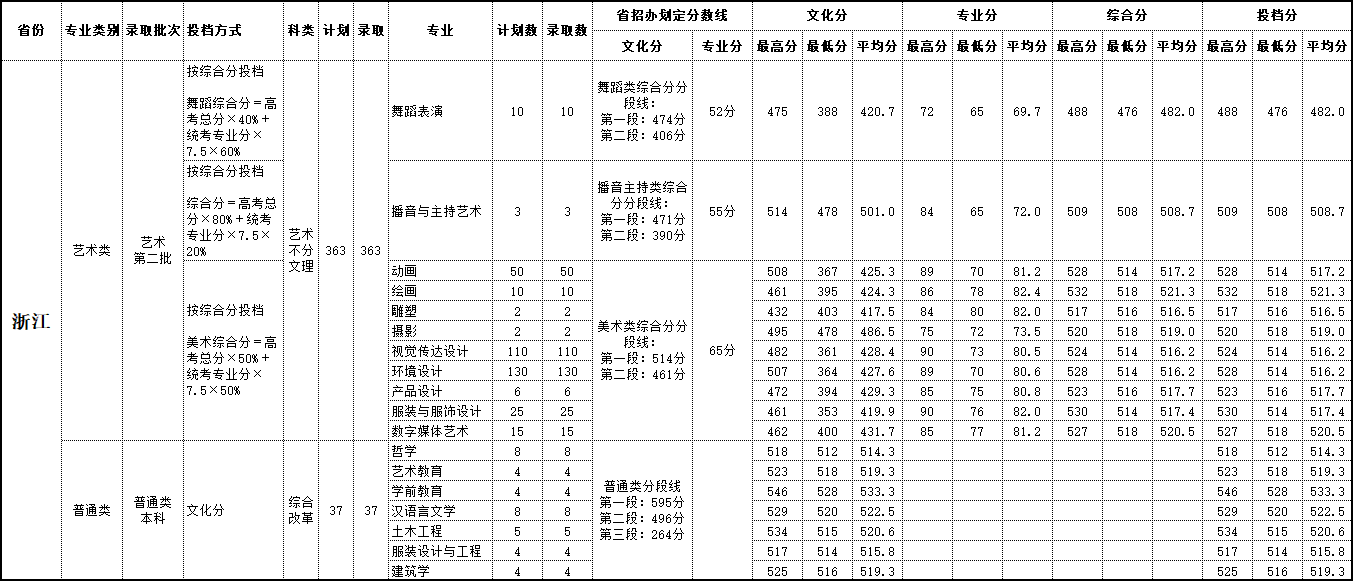 2019年 浙江录取情况