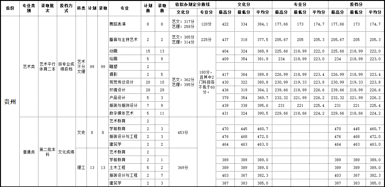 2019年 贵州录取情况