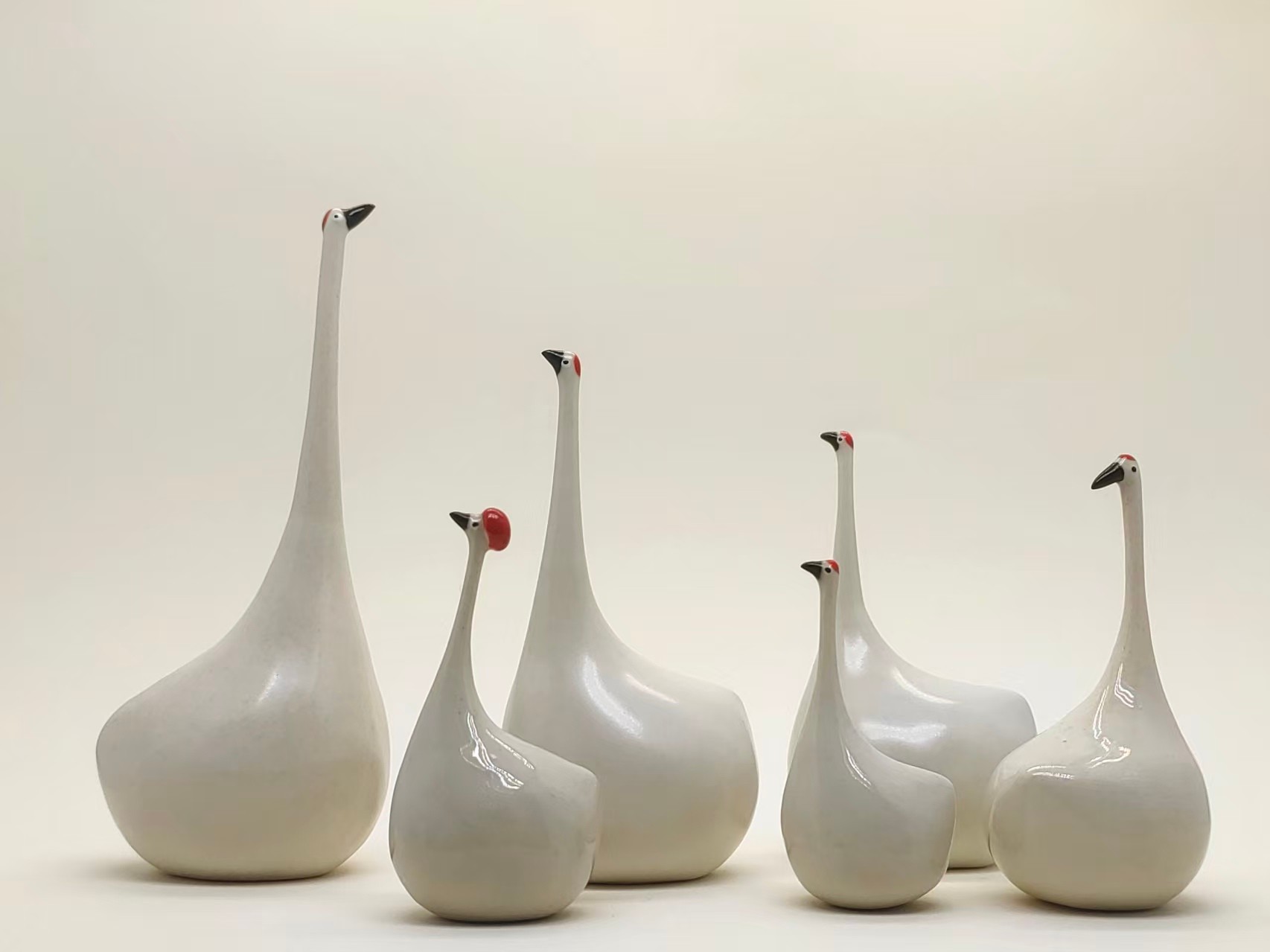 作品《鹤忆》以宋代"鹤"文化为核心灵感源,萃取宋代艺术"简约雅致,意境悠远"的精神内核。宋代文人将鹤视为高洁,隐逸,长寿的象征,灵动气韵,功能与意境共生。无过多装饰,仅以素雅釉色本身的质感凸显鹤的高洁,契合宋代"单色釉为上"的风尚。通过陶瓷这一载体,让人们在使用或观赏作品时,既能感受到千年文脉的沉淀,又能体会到"闲云野鹤"般的自在心境,实现"器物有灵,意境共生"的设计追求。。