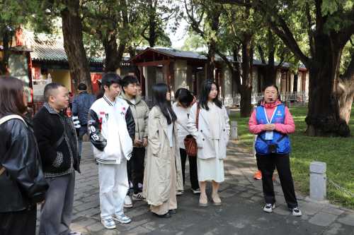 在孔庙和国子监博物馆的参观过程中,学生们认真听取了讲解员对中国古代科举制度的详细介绍,了解了科举考试的流程、考试内容以及科举制度对中国古代社会的影响。随后,师生一同参观了国子监的讲堂、藏书楼等历史建筑,深刻感受古代学府的学术氛围和教育理念。通过实物展示和历史场景的再现,学生们对中国传统文化都有了更加直观的认识。