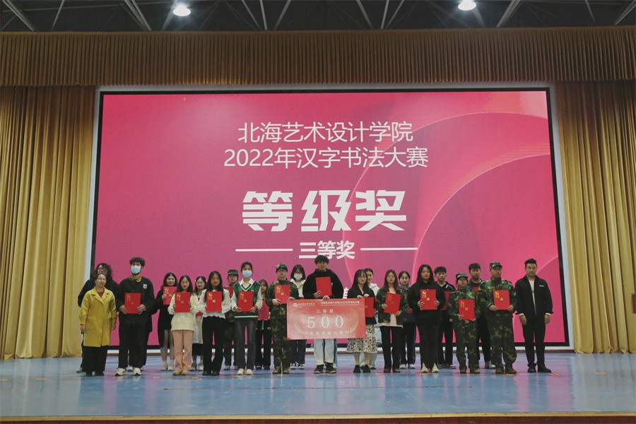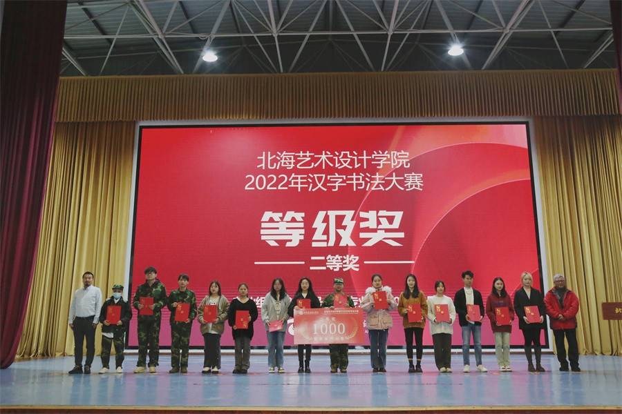 12月9日下午,我校2022年汉字书法大赛颁奖典礼在西校区大礼堂顺利举行。学校副校长胡胜、陶立阳出席典礼,设计艺术学院院长李林平、动画与传媒学院院长孙永辉、人文教育学院院长熊秀峰、美术学院院长龚为、马克思主义学院院长姜献生、通识教育学院院长杨莹、创新创业学院院长云曼、建筑与环境艺术学院副院长王文刚、教务处处长武鹏程、宣传部部长文春明参加典礼。