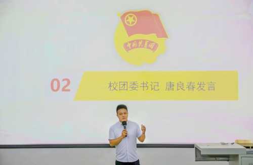 分团委副书记陈宣辰在发言中强调了保持初心的重要性,鼓励学生独立解决问题,积极参加活动,主动学习,相互请教,发现兴趣爱好,挖掘潜力,实现理想。