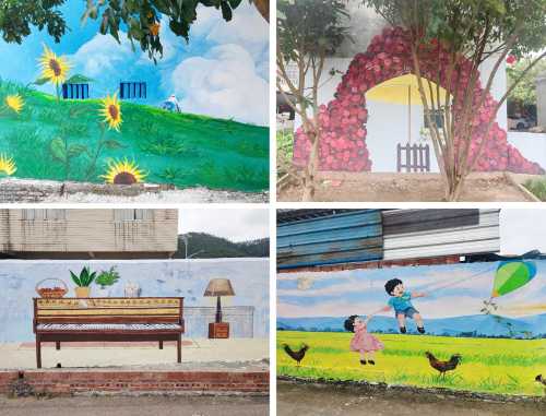 阳光洒在洁净的白墙上,志愿者们围在一起,手持画笔和颜料,专注地在村民需要绘制墙绘的墙面上勾勒出五彩斑斓的图案。小心翼翼地描绘高处的细节,认真的涂抹墙面背景色。空气中弥漫着淡淡的颜料味道,混合着大家的欢声笑语。手绘墙,以其独特的艺术魅力,为当地乡村振兴绘就了一幅充满诗意与希望的画卷。其独特的艺术语言,将乡村的自然风光、历史文化与现代创意完美融合。以墙为纸,以心为笔,勾勒出一幅幅充满诗意的画卷。