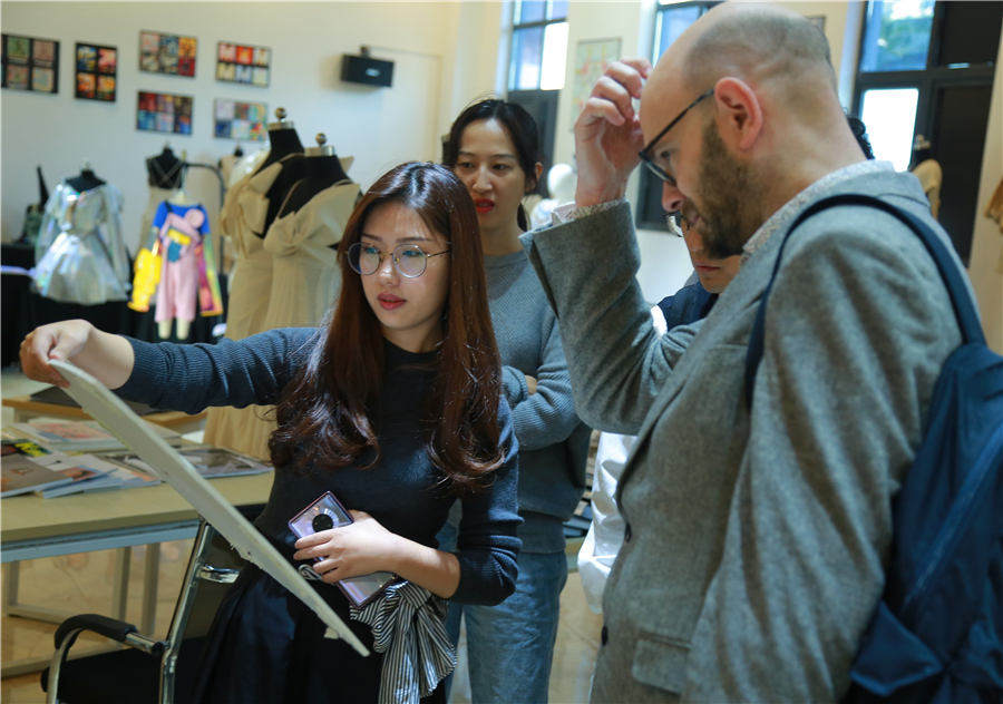 在我校副校长胡胜和服装学院副院长孙竹青的陪同下,来到西校区服装学院的工作室,Matt Hawthorn副院长认真听取了陈婷婷老师对于服装学院的发展历程、学科特色、人才培养和办学成就的相关介绍,并参观了服装学院师生的作品。