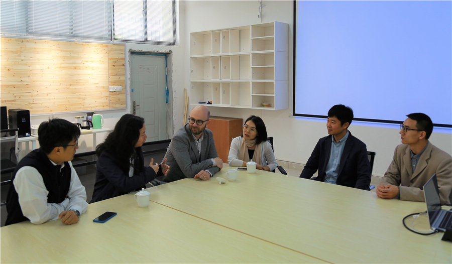 随后,Matt Hawthorn教授走进环艺学院的教研工作室以及教室。与正在课间的师生亲切交流,并在环艺学院的教研工作室和教师进行了座谈。环艺学院副院长王照伟简要介绍环艺学院的情况后,Matt Hawthorn教授表示环艺学院资源蕴藏丰富,教学水平和教学理念也非常先进,在时刻保持着中国特色的基础上与世界一流院校接轨,具有专业的水准。