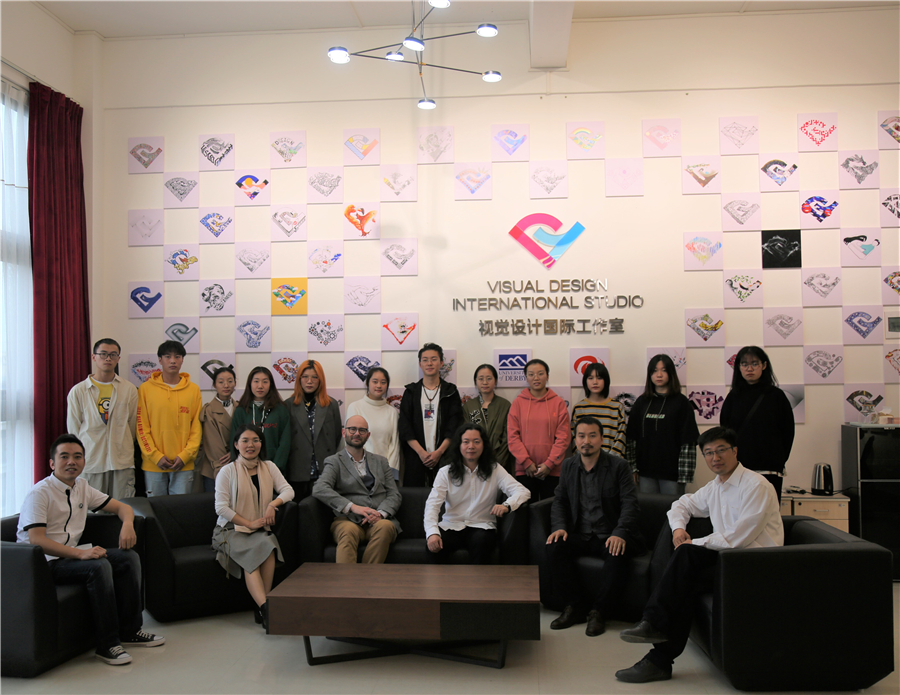 Matt Hawthorn教授与副校长胡胜、设计学院师生合影