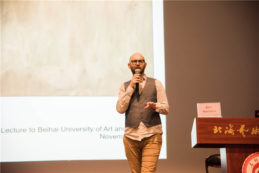 当天晚上在西校区大礼堂,德比大学艺术学院副院长Matt Hawthorn教授还为我校师生带来一场题为《国际艺术设计鉴赏》的精彩讲座,现场座无虚席。本次讲座由胡胜副校长主持。