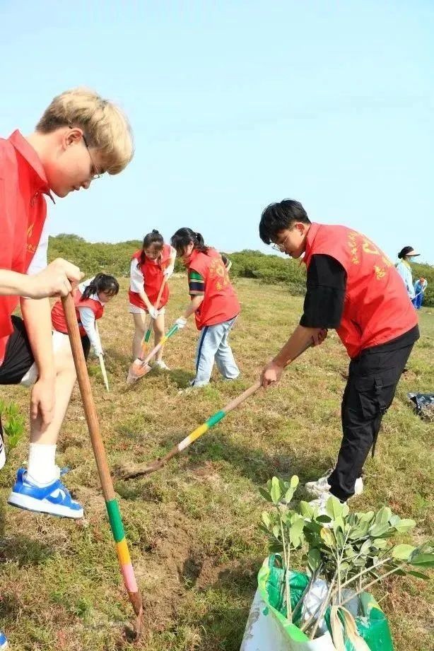 活动进行到一半,许多志愿者大汗淋漓,但脸上挂着的笑容无不表现出他们对植树活动的热情与活跃。为了北海青年红树林生态得到更好的保护和向善发展,志愿者们无私奉献,吃苦耐劳。下一年北海青年红树林新生的小树将是青年志愿者们对于春天最浪漫的回馈。