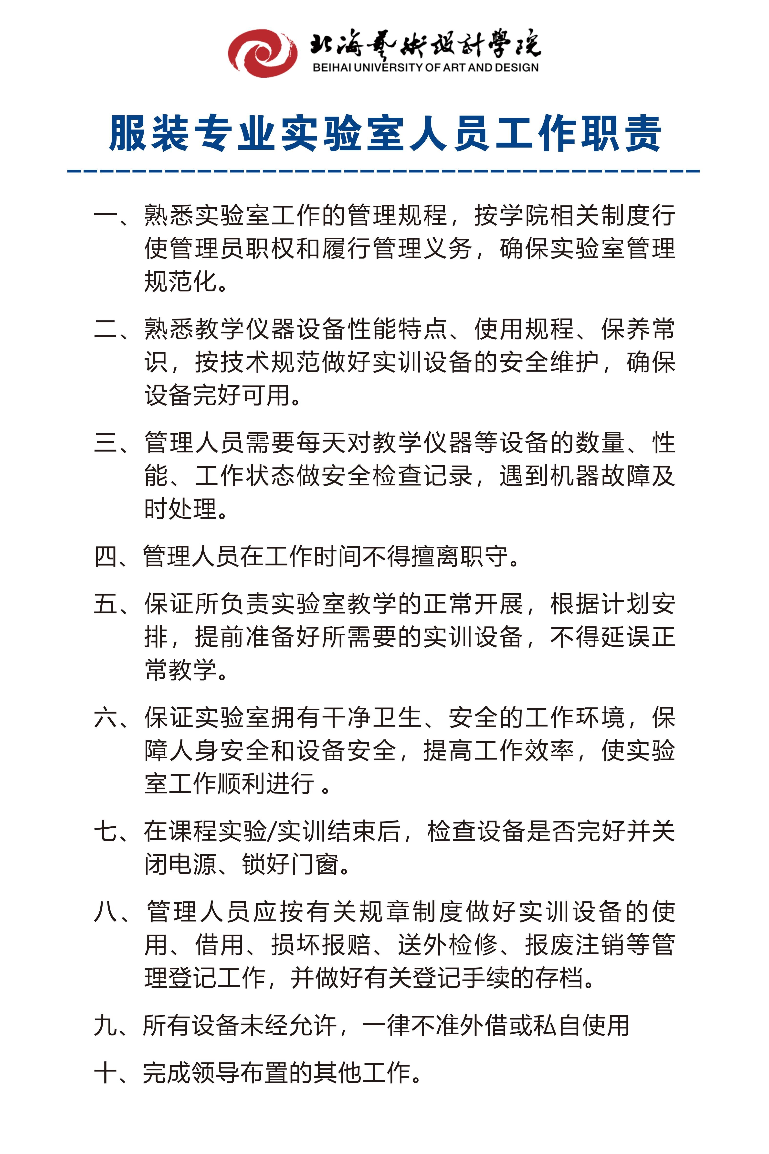 服装专业实验室人员工作职责