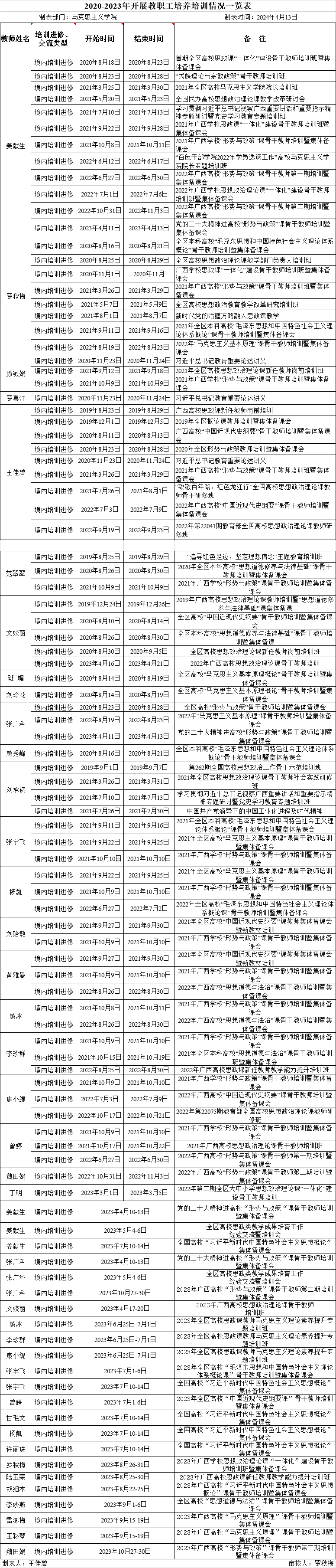 2019-2021年马克思主义学院教师培训进修情况一览表
