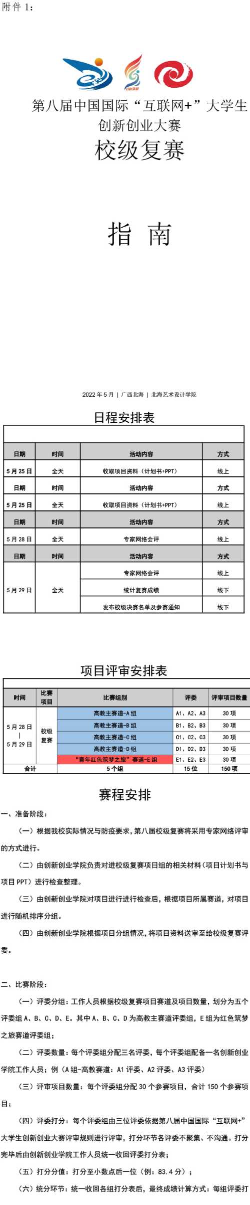 北海艺术设计学院第八届中国国际“互联网+”大学生创新创业大赛校级复赛入围名单公示与参赛通知