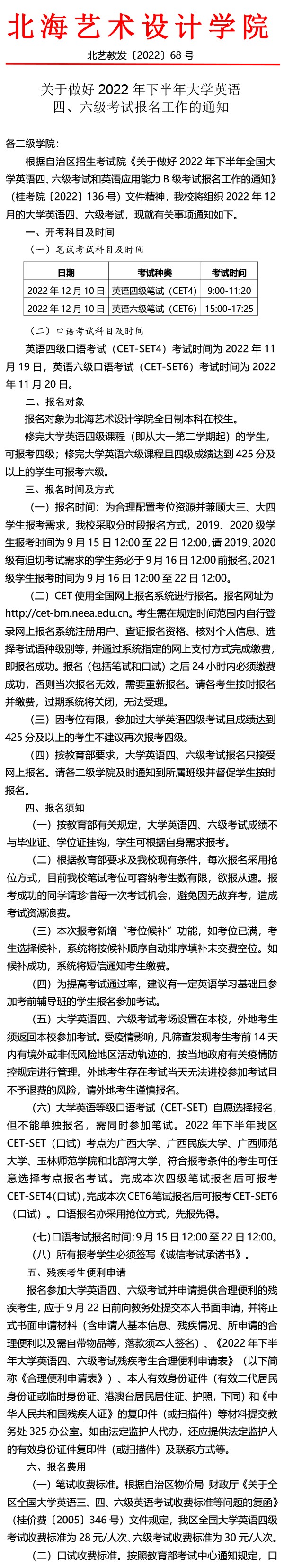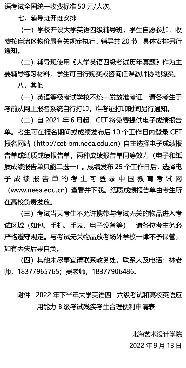 关于做好2022年下半年大学英语四、六级考试报名工作的通知