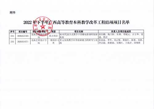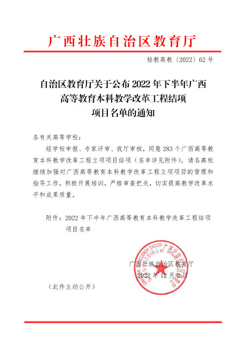 自治区教育厅关于公布2022年下半年广西高等教育本科教学改革工程结项项目名单的通知