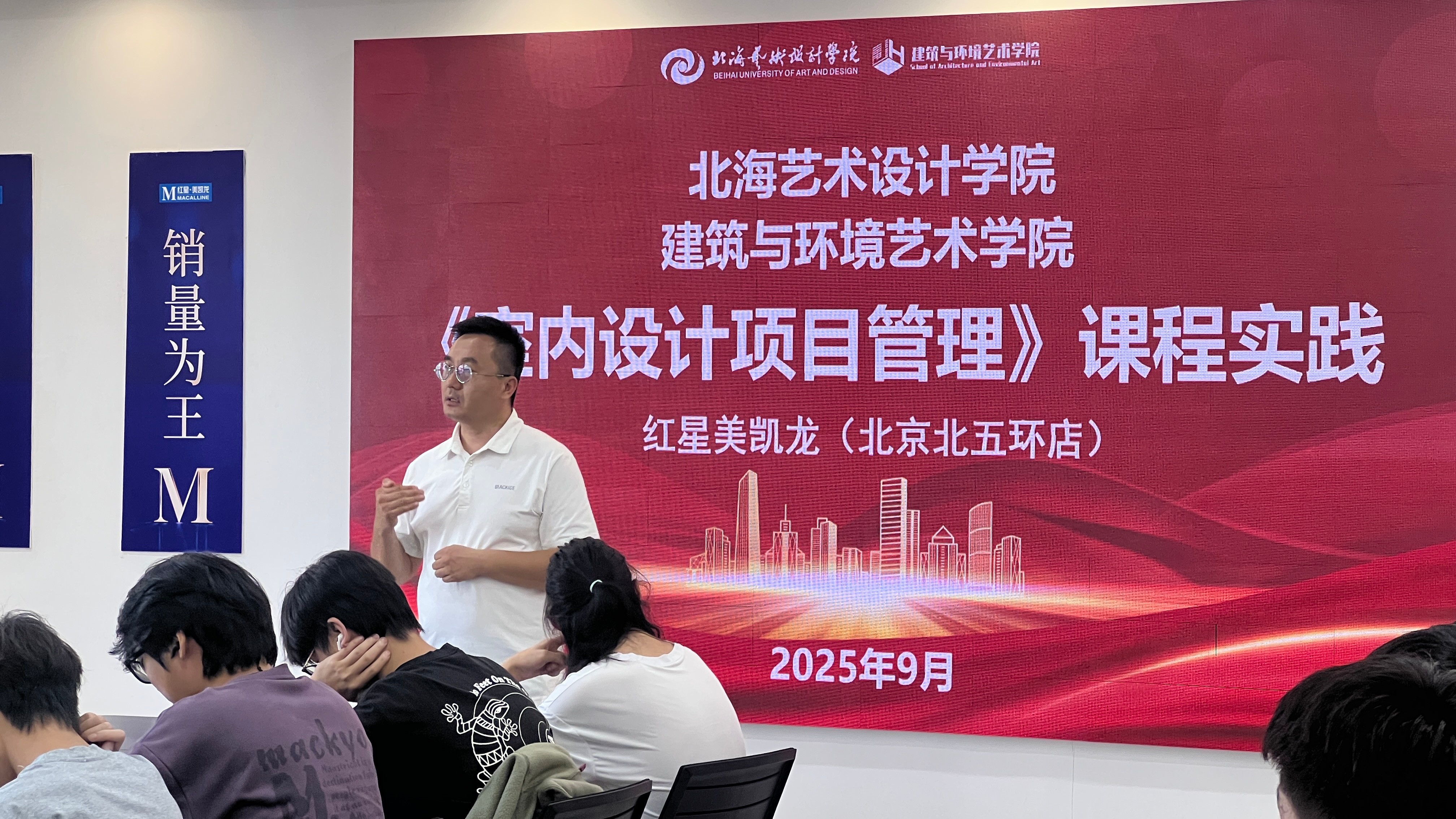 9月18日至19日,建筑与环境艺术学院延续创新实践教学模式,由北京实践基地组织环设22级学生赴北京红星美凯龙全球家居1号店,开展为期两天的沉浸式实践教学,将《室内项目管理》课堂搬至行业一线。本次课程由郭瑞、张云、张浪三位资深设计师主讲,以“问答互动+案例解析+市场调研”形式,打造兼具专业深度与行业广度的实践课堂。​