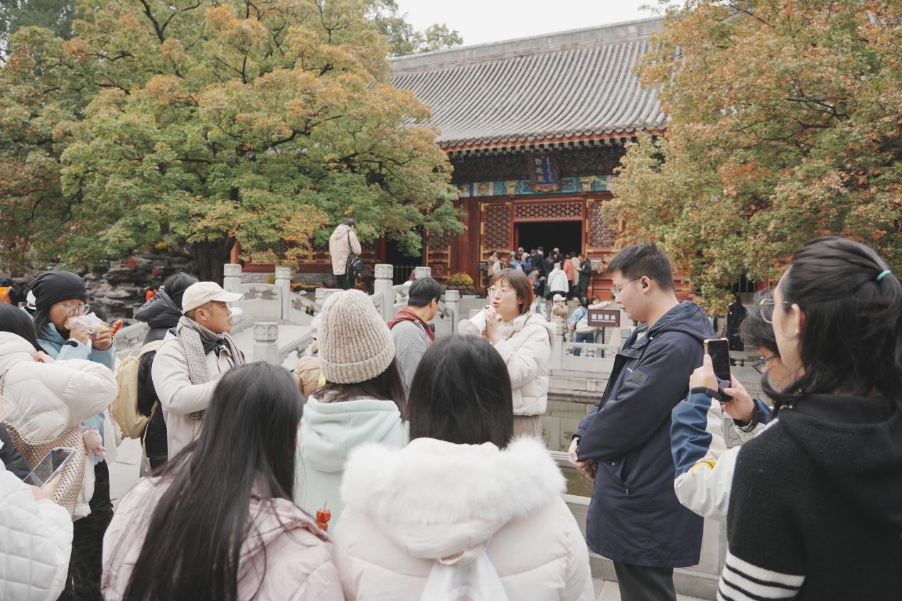 此次香山实践创新性打造“三段式教学闭环”:线上预授精准解决“认知盲区”,让学生带着问题去考察;现场教学直击“理论壁垒”,用场景化教学破解抽象知识;自主考察则鼓励学生聚焦雨香馆、来青轩、香雾窟等微观景观,开展“传统造园技术当代转化”专题调研,将所学知识主动迁移应用。