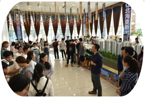 “德利·海北海”是有广西德利投资集团有限公司开发的新楼盘,其楼盘的设计及公司服务得到广大群众的认可,在北海市房地产业内享有较高的美誉。我院师生在公司讲解员的介绍下,首先参观了“海北海”楼盘的沙盘,了解该小区的综合整体规划、户型设计、区域特色等,体验和感受公司的设计理念和管理文化,了解未来房地产行业的发展趋势和动向。