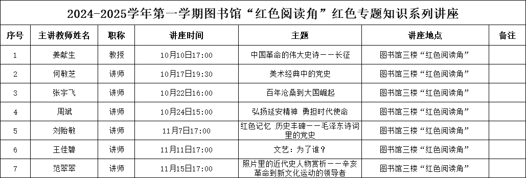 讲座预告|2024-2025学年第一学期图书馆“红色阅读角”红色专题知识系列讲座