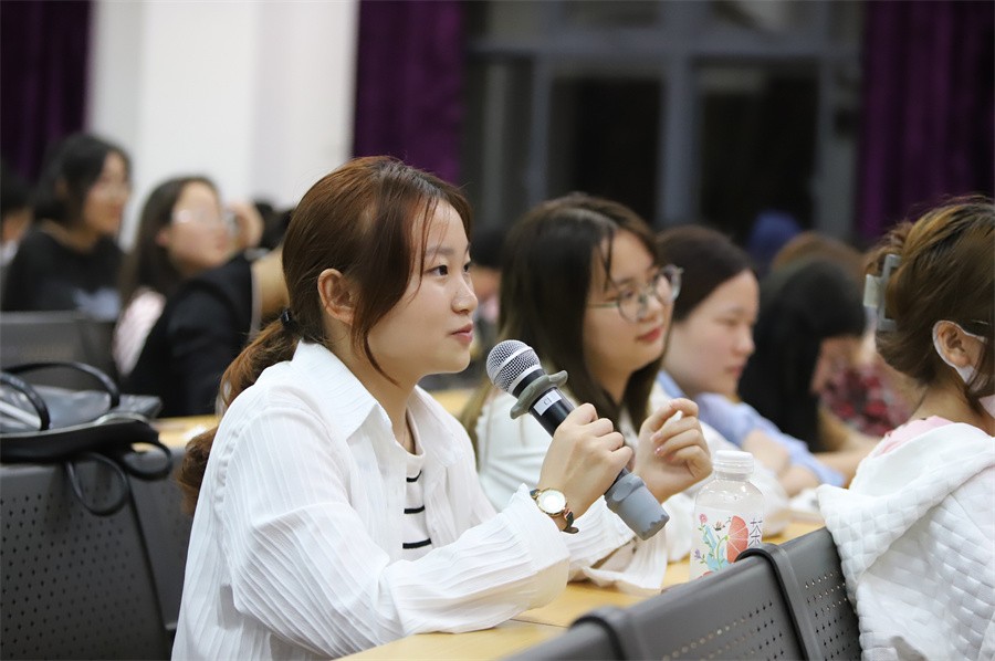 讲座过程中,谭教授与在场师生进行广泛互动,授课氛围活跃,深入浅出的讲授令广大师生受益匪浅。最后他指出要培养能听得懂“机器人”语言的自由诗人,训练能读得下“旧经典”语言的专业新人,塑造能写得出“新思想”语言的创造高人。他赠与在场师生三句警句:“向内生长,向外飞扬。诗人想象,自由思想。经典阅读,创造表达”,对大家寄予了深切期望。