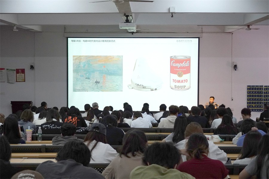 为帮助师生把握人工智能领域的前沿动态,提升环境设计专业领域的学术视野与实践认知,6月3日上午,清华大学美术学院杨冬江教授在西校区伦理楼107教室,带来了一场题为《AI时代设计教育的新范式》的专题讲座。讲座聚焦人工智能技术的发展趋势及行业应用,为环境设计相关专业建设与教育教学注入科技赋能的深度思考。讲座由我校总督学王斌主持。