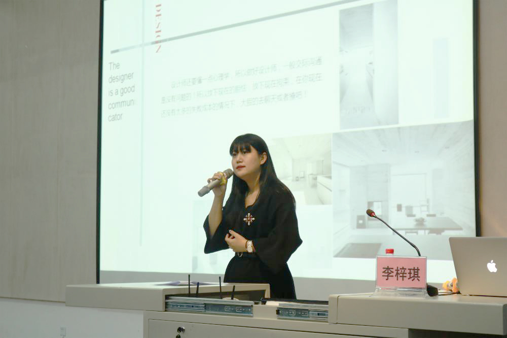 李梓琪教授的讲演幽默风趣,她首先将同学们带入她的设计世界,用特有的方式“设计生活”进行详细的阐述,并提出了“设计源于生活,生活源于设计”的创作理念。