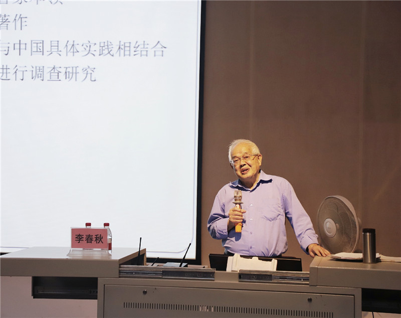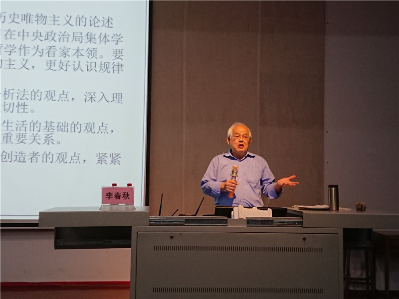 李春秋教授以习总书记先后两次主持中央政治局集体学习历史唯物主义和辩证唯物主义为例,强调我们要把学习马克思主义哲学作为看家本领,自觉地把马克思主义哲学的认识论和方法论与中国实际紧密结合。