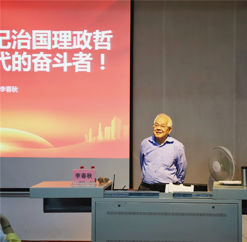 李春秋教授还利用生活、学习中的例子来解读哲学与人生,他从共产党的领导、人民群众为中心、科学理论指导、奋斗要有领路人四个方面对如何奋斗进行了诠释。随后,李春秋教授与在场同学们进行问答互动,他细心聆听和认真回答了同学们的一些提问和疑惑。最后李春秋教授向同学们分享了他的人生信条:人生需要奋斗,在奋斗中完善自我,在奋斗中展现人生价值,在奋斗中创造人生幸福。