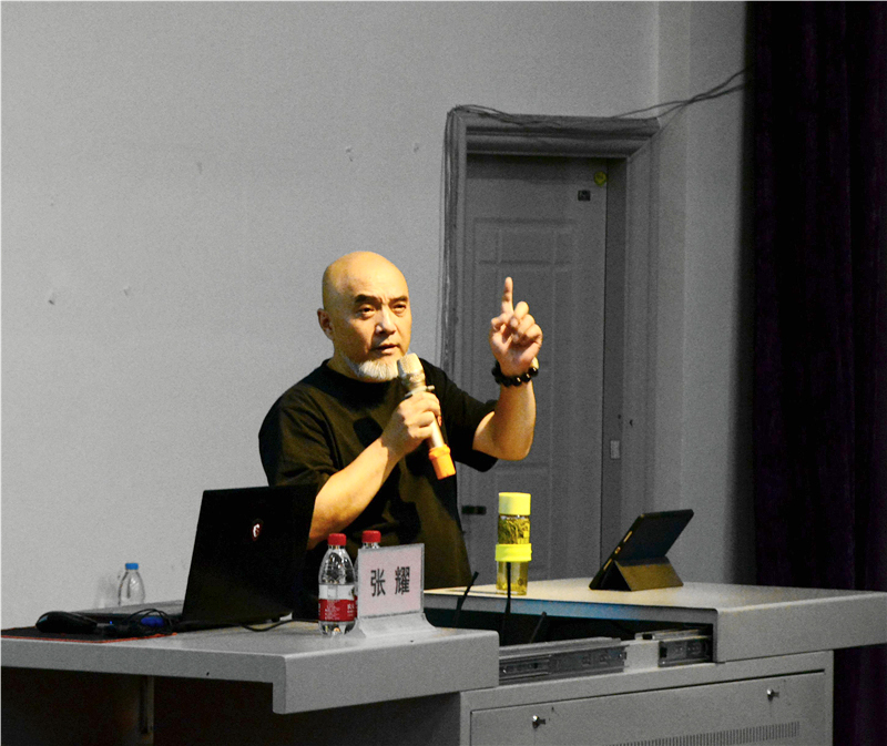 讲座开始,张耀教授表达了受邀来北艺的感谢,向在座的老师同学们展现了其博大的胸怀和人格的魅力。随后教授概述自己对设计教育的认识和设计市场的认知并向大家分享了很多实际设计案例。