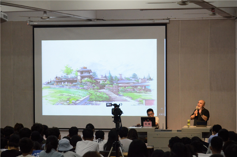 接下来,张耀教授为我们分享了设计师手绘以及研究生作业的案例效果图向大家解释了手绘是设计的生命,手绘是设计师捕捉设计的重要技能,也是设计者表达灵感最初方式。希望大家认真学习,多去收集课外资料,最后汇总成一个资料库,为以后的学习做铺垫,生动的讲解使在场师生受益匪浅。