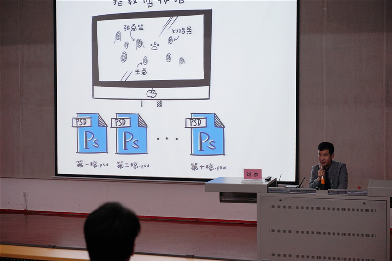 最后,现场提问环节刘杰教授与同学们积极互动交流,他谈到将无形转化为有形的方法就是通过各种具体的设计来展现最初的想法,将所有的想法通过细节展现出来,我们在学习阶段的积累是十分重要的,刘教授的讲解使在场同学受益匪浅。