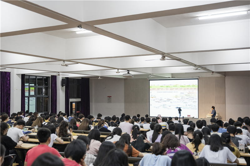 讲座开始时,李四达教授通过一张旧报纸向同学们介绍了旧时代下的数字媒体,让大家初步了解了数字媒体艺术的发展进程。接下来,李教授由艺术与科技核心课程体系展开话题,分享了他的一部分著作。又通过一段现代化数字媒体视频,让大家了解到新艺术形式与传统艺术形式的区别在于,新艺术文化具有极强的参与性,需要采用大数据来进行媒体制作。