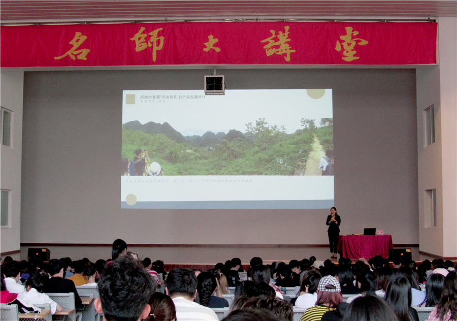 2019年12月18日于我校西校区大礼堂,广西艺术学院设计学院视觉传达系主任李娟教授为我校师生带来一场题为《设计视界》的精彩讲座。本次讲座由我校设计学院常务副院长李林平主持。
