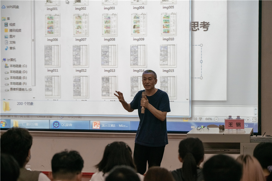 王钢教授表示非常荣幸来到北海艺术设计学院进行讲座,本次讲座内容以磨片分镜、命题分镜、创作分镜三个版块展开。