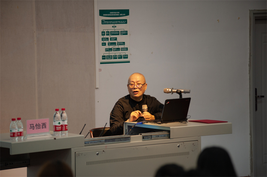 马怡西教授通过分享自己的绘画作品,表明在设计中要不断研究,不断超越,探索新的学术风格并长期专注的投入才能拥有更加深厚的造诣,他鼓励同学们要充满信心,逐步做好专业积累。