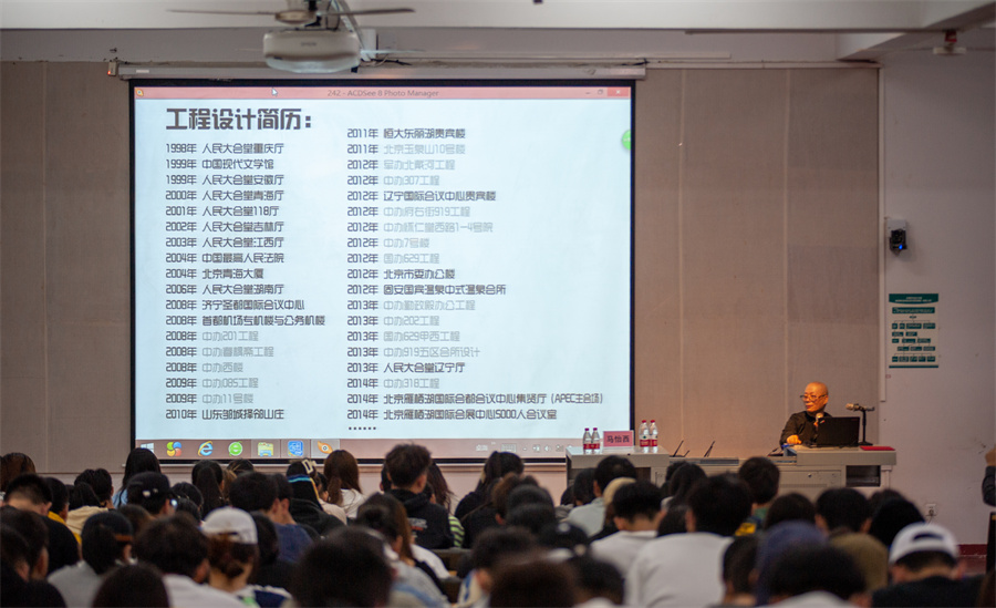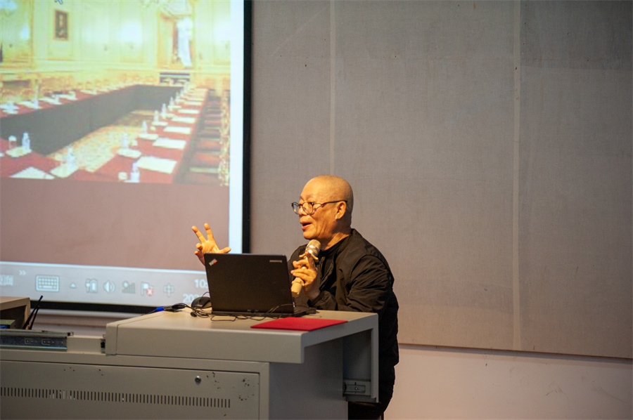随后,马怡西教授通过展示世界著名的首相府、总理府等设计为同学们讲述了现代礼仪空间设计的要求与现实意义,此类设计作品展现国家的大国风范和礼仪风范。马怡西教授表示,认识建筑不仅仅是片面欣赏,更要深层探索建筑设计的文化内涵。当代青年大学生要主动去了解各国的古建筑,要像对待历史老人一样看待它们。正是中西方文化的协同发展,使得多元设计的灵魂碰撞,造就了多姿多彩的万千世界。