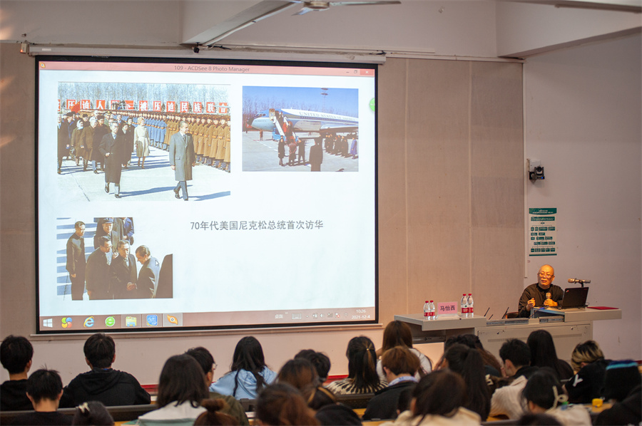 讲座最后,马怡西教授缅怀唐宋先贤,勉励同学们要树立榜样意识,以高要求、严标准作为衡量个人学习的标准,深刻认知文化内涵,以热爱灌溉梦想土壤,以认真护航梦想之路,不忘初心,不负梦想,无畏前行。