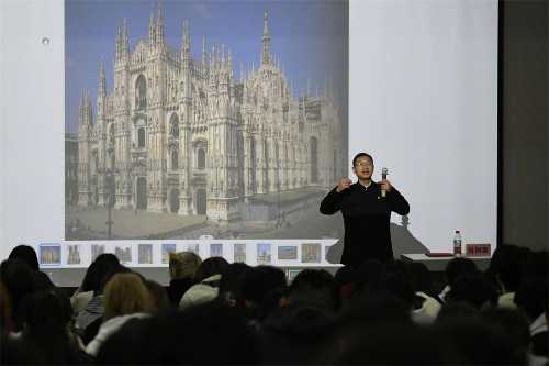 讲座过程中,张树新教授对我校的艺术教育给予了高度赞扬与肯定,并分享了他历年来的教学成果与经验,深入浅出地讲述了设计艺术与中国文化精神的内涵联系。张树新教授指出要将情感寄于作品,他对芭蕾舞与杂技中的不同技巧进行对比,点明适当的技巧会使作品锦上添花,但不要过分炫技,要放眼全局、观看全貌,使整体和谐美观,展现作品情感。在东西方不同的环境下看待艺术的本源和精神的内容中,张树新教授分析了中国传统文化中的相同之处和差异,在其他文化内涵和艺术精神的影响下,相互磨合,逐渐交融,从而有了现在的文化发展。