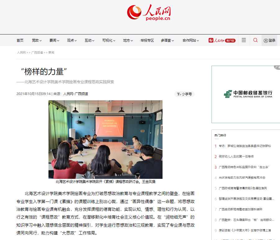 人民网:“榜样的力量” ——北海艺术设计学院美术学院绘画专业课程思政实践探索