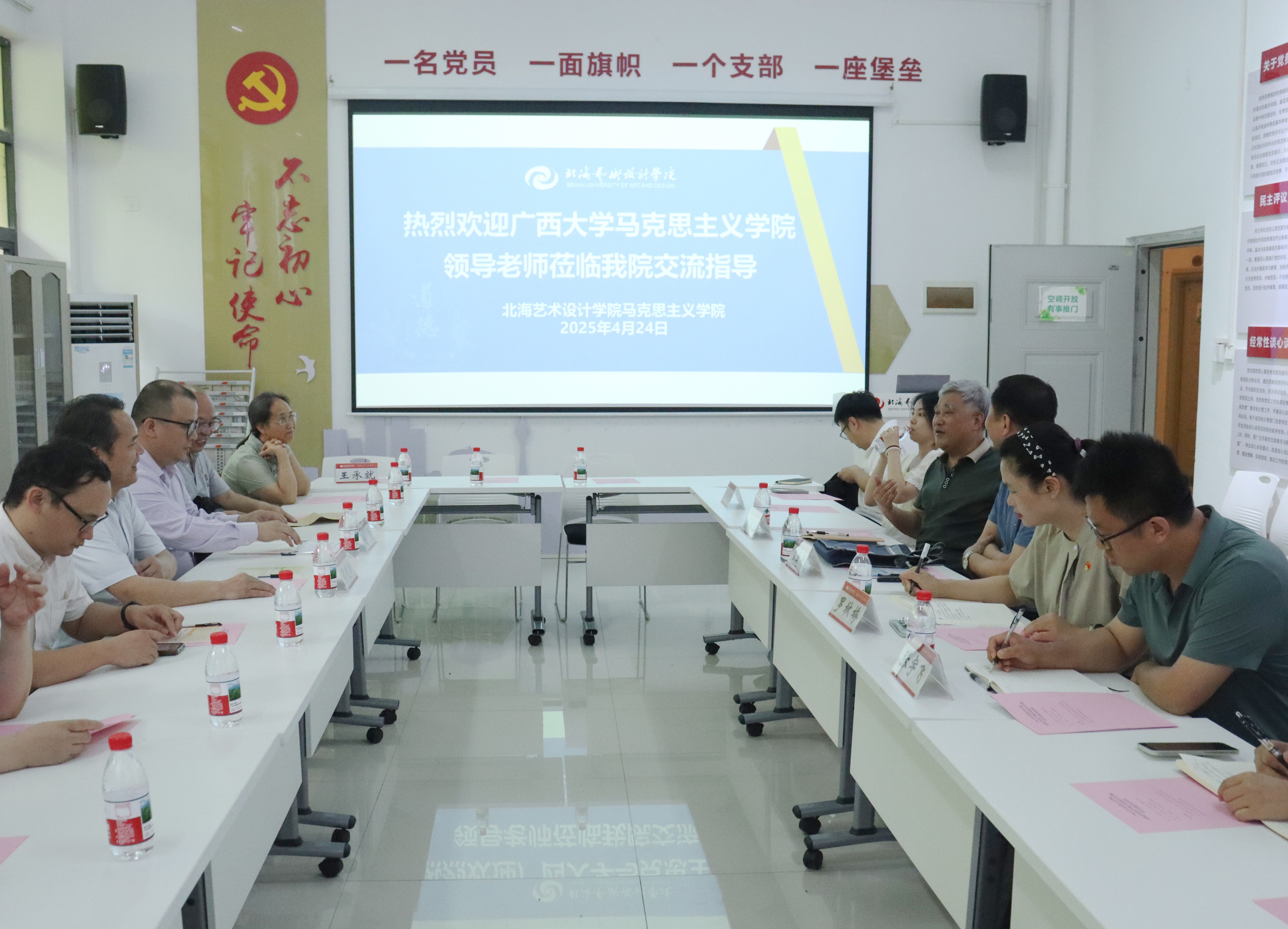 首先,学校党委书记覃宪儒对广西大学马克思主义学院领导老师的到来表示热烈欢迎,并回顾了与广西大学的历史渊源。紧接着,他从坚守教育情怀、服务西部边疆,坚定党的领导、立德树人为本,明确发展理念、强化四个坚持,双城育人特色、促进三个融合,服务地方发展、强化四个助力等方面详细地介绍了学校的基本情况,全方位地向大家展示了我校作为民办艺术设计类本科高校的特色、亮点做法。