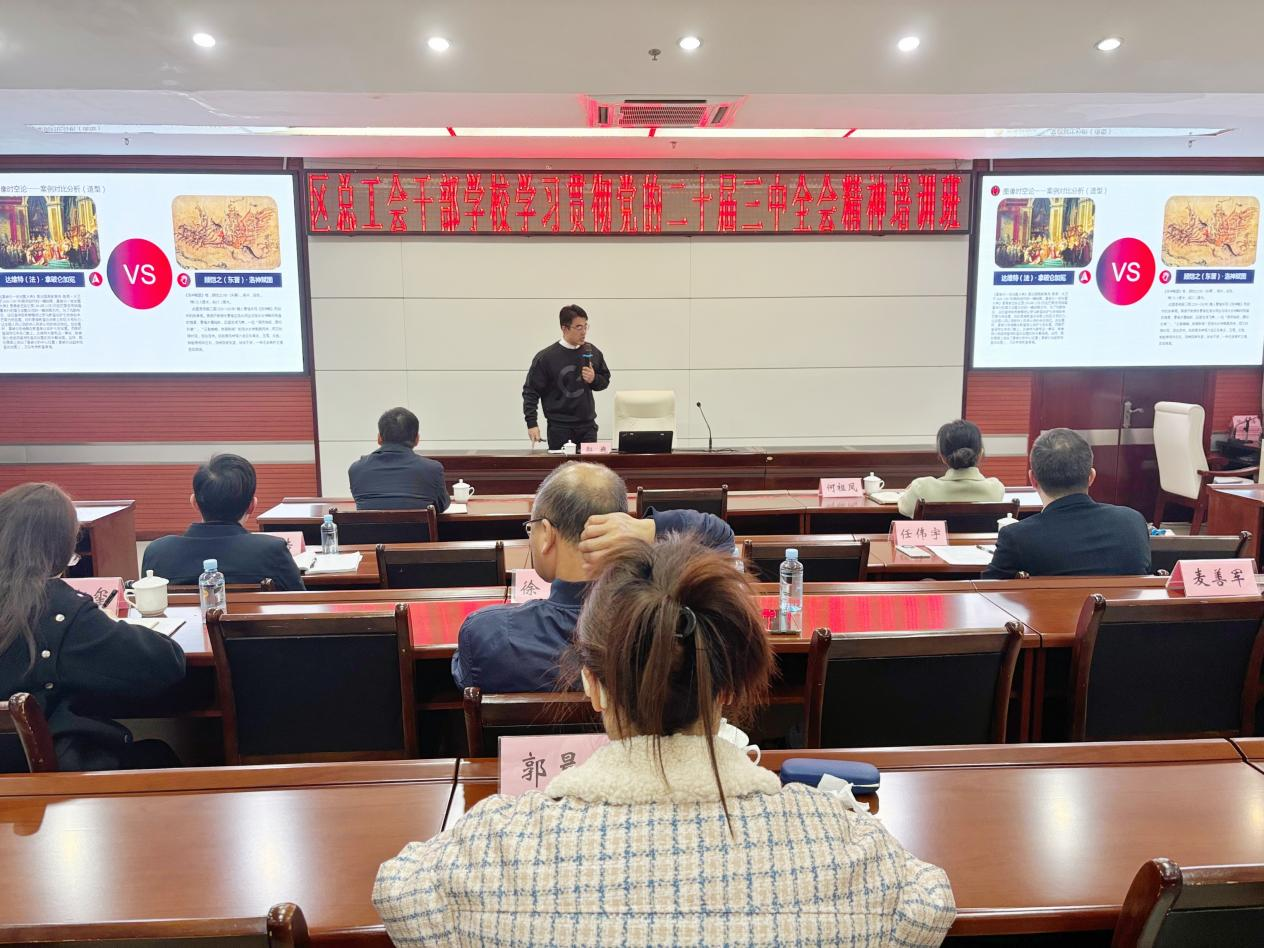 2025 年 2 月 28 日,我校青年教师郭巍受邀赴广西壮族自治区总工会干部学校,为其全体教师 学习贯彻党的二十届三中全会精神培训班” 作专题讲座,讲座主题为《在艺术对话中弘扬 “三个精神”——“中国梦・劳动美” 主题艺术课堂》。