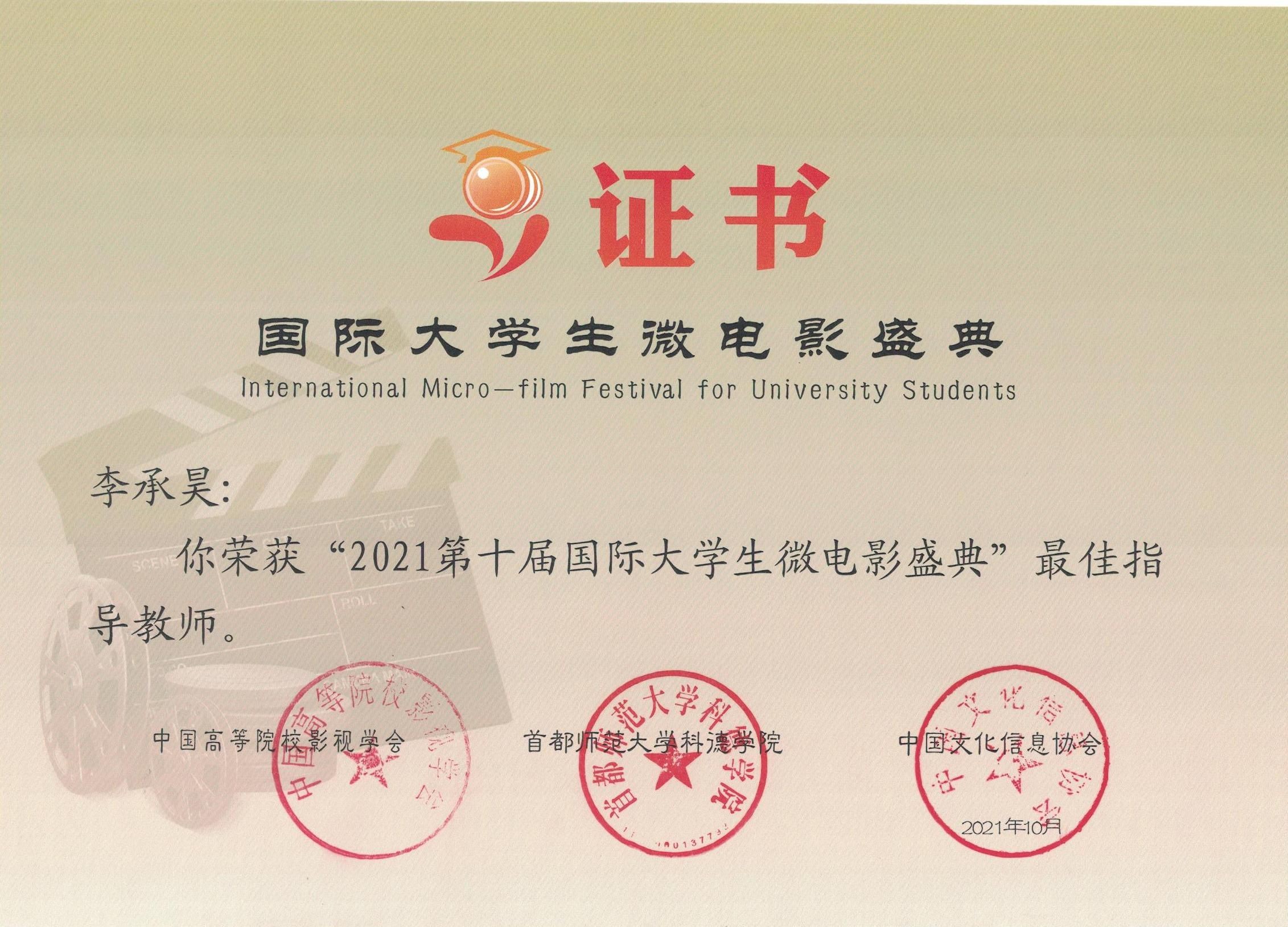 本次活动由21位评委分为剧情组、纪录片组、航拍组、动漫组,通过集中观看与研讨的形式进行评分,最终从5000余部作品中遴选出127部作品成功晋级终评,直播现场揭晓了第十届国际大学生微电影盛典全部获奖榜单,我校作品《唱给海的歌》获得剧情单元三等奖。