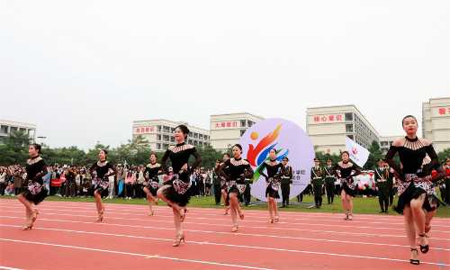 精彩绝伦的表演节目,为开幕式增添光彩,引爆气氛高潮。2022年十佳歌手带来歌曲《闪亮启航》,悠扬歌声、欢快旋律交相辉映。由获得2022年全国啦啦操锦标赛(普通高校组)第一名的同学带领表演的啦啦操,大大鼓舞了士气。人文教育学院舞蹈专业表演的拉丁舞,自信优雅的姿态展示无限魅力。由刘琛钊老师领衔舞蹈专业伴舞的大型歌伴舞节目《向往》传递磅礴力量。