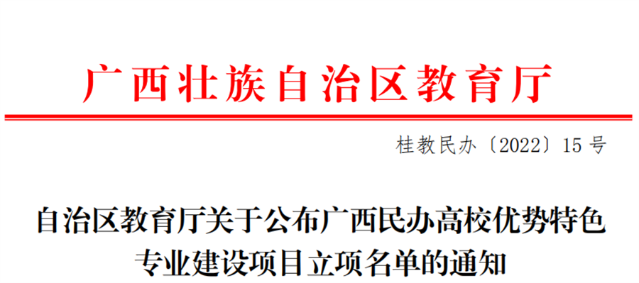 近日,广西壮族自治区教育厅下发《自治区教育厅关于公布广西民办高校优势特色专业建设项目立项名单的通知》(桂教民办〔2022〕15号),公布了2022年度广西民办高校优势特色专业立项建设名单。我校绘画和视觉传达设计专业入选。