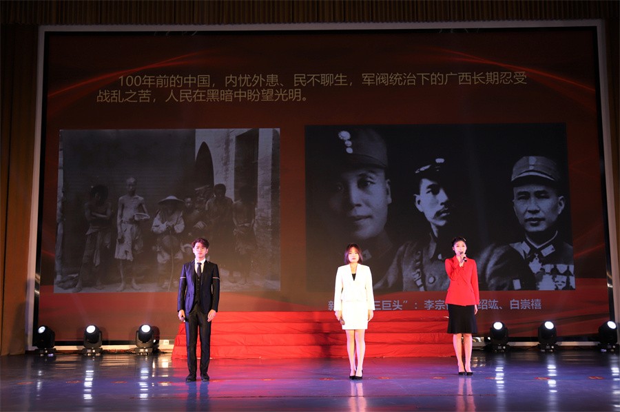 分享会共分三个篇章,回顾了广西从1925年第一个党支部成立到党的二十大召开的光辉历程,深情讴歌发生在八桂大地上的革命斗争和发展建设的壮丽风采,带领师生一起感受一个又一个让广西儿女骄傲的红色传奇,品味中国共产党党员的赤诚初心和奋斗精神。