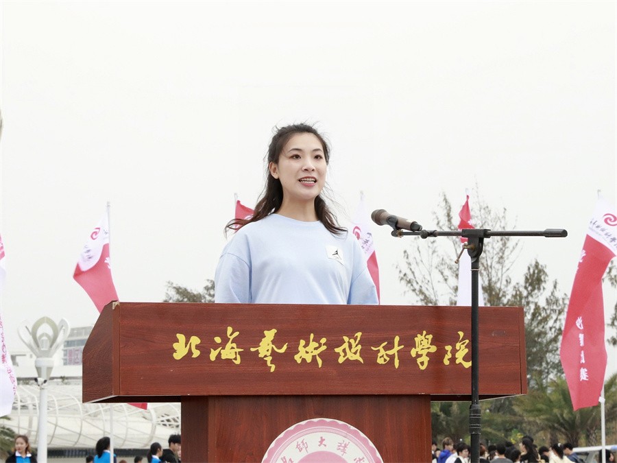 党委书记张阳宣布“北海银滩沙雕比赛暨北海艺术设计学院第二十届沙滩运动会”正式开幕