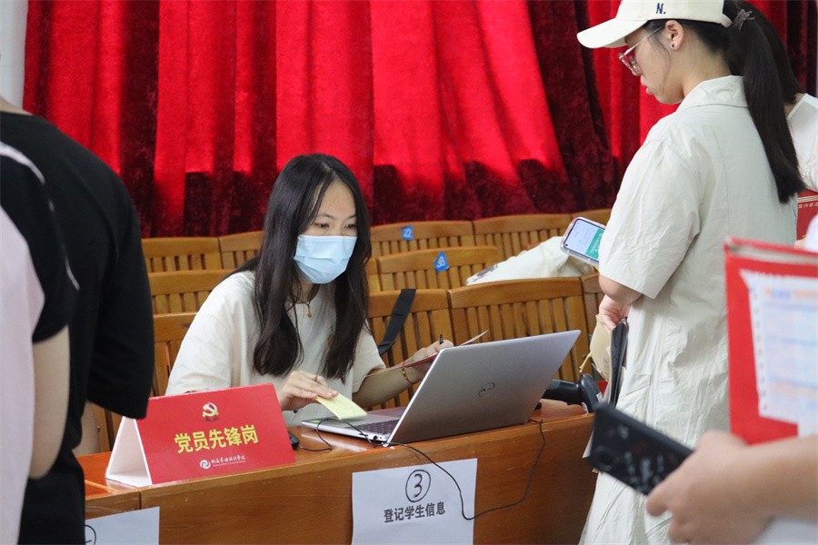新生报到期间,校门、校园主干道,迎新现场、宿舍区等主要区域迎新氛围浓厚,各项迎新标识清晰到位。学校在主要交通枢纽车站、机场等均设置了迎新接待点详细指引和帮助新生和家长前往学校。学校优化校内报到“一站式服务”流程,设立党员先锋岗和新生绿色通道接待处,从入校、报到、办理住宿各环节安排均有志愿者和工作人员提供热心服务,志愿者积极主动参与指引和协助工作,确保迎新报到快捷、便利、高效。