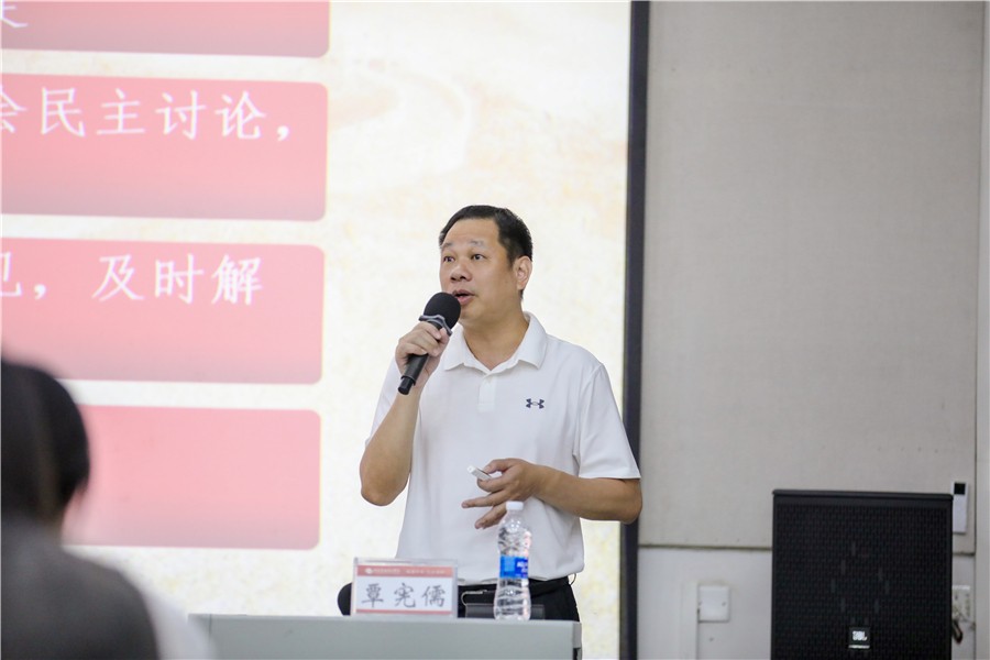 培训班第一堂课由学校党委书记覃宪儒主讲,他以《团结统一的基石 拒腐防变的法宝——党的组织制度和党纪党风》为题,围绕中国共产党的组织原则和组织机构、中国共产党的纪律、中国共产党的优良作风、《中国共产党纪律处分条例》专题学习三方面展开。他表示,中国共产党之所以能走到现在,正是因为有完善的组织原则和党内监督体系,党员干部理应以更高的标准、更严的要求、更硬的措施执行党的组织原则和党纪党规,把他们落实到行动上、落实到工作中。要以身作则、以上率下,带头增强党规党纪意识,严格按照党的原则和规矩办事。