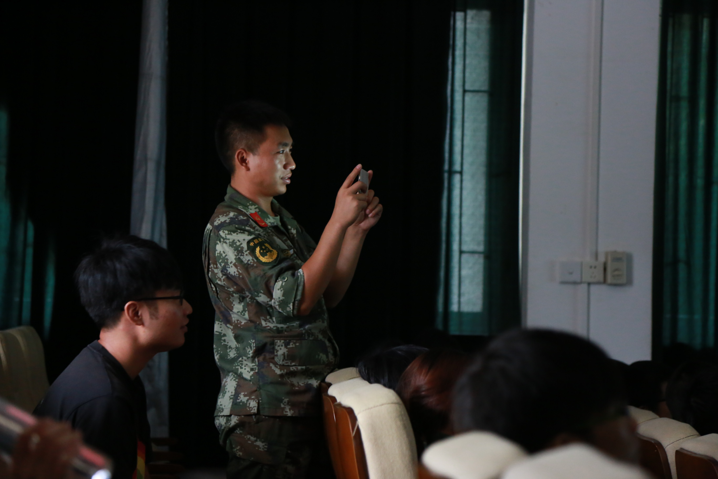 上午10点,在70响轰隆的礼炮声中,纪念大会正式拉开序幕,气势恢宏的阅兵仪式让在场的同学们感到热血沸腾。同学们纷纷表示,此次召开庆祝大会并举行阅兵仪式,不仅让自己更进一步了解了中国的抗战历史,对于塑造中国心、凝聚民族魂、珍爱和平都有十分重要的意义。新生教官也在观看本次纪念大会有所感慨,说道:“今年军训正好赶上了抗战胜利70周年纪念日,希望在刚刚离开父母亲踏入大学校园的大学新生们有所启发,为新生们接下来的军训乃至今后的学习、生活中增添一些动力!”