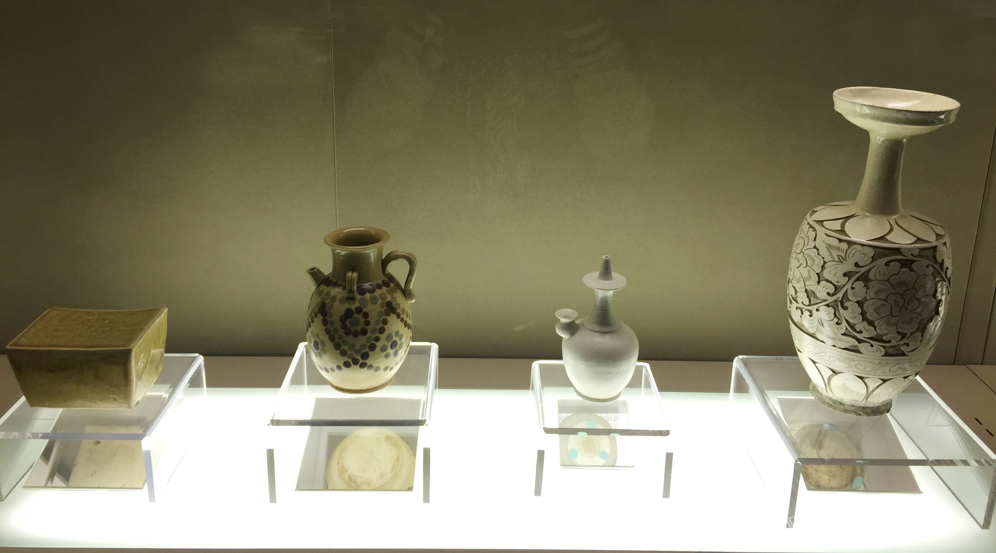 陶瓷馆长年展出宋代至清代1000多年间,中国古代官窑、民窑的瓷器150多件,是宋(辽、金)、元、明、清时期,五大名窑(汝窑、钧窑、官窑、哥窑、定窑)最具代表性的器物。